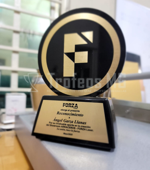 Reconocimiento En Acrilico Negro Con Placa En Color Dorado