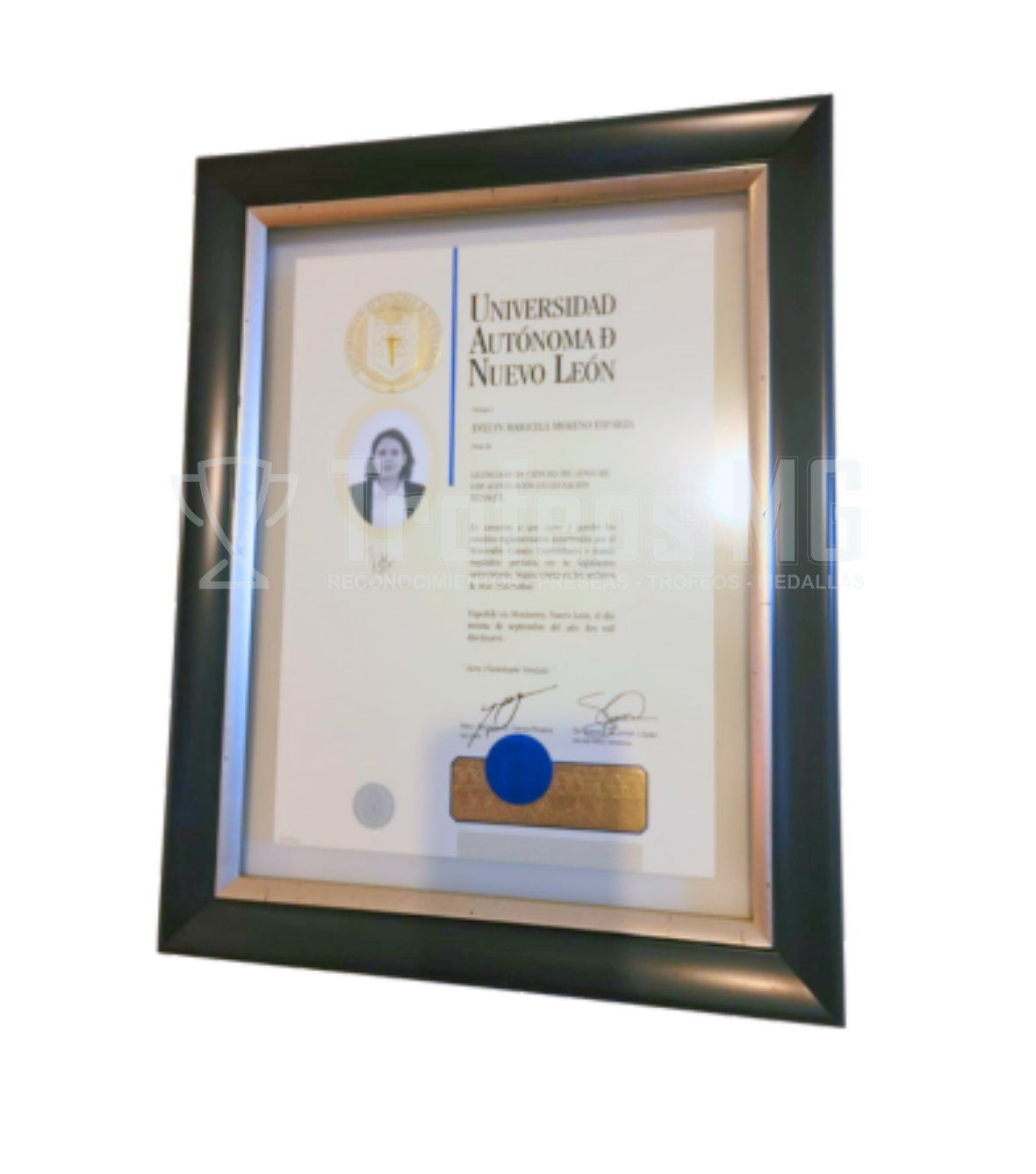 Placa de enmarcado de título, ideal para exhibir diplomas, certificados y títulos de forma elegante. El marco de alta calidad protege el documento y le da un aspecto profesional y sofisticado, perfecto para oficinas y espacios de estudio.