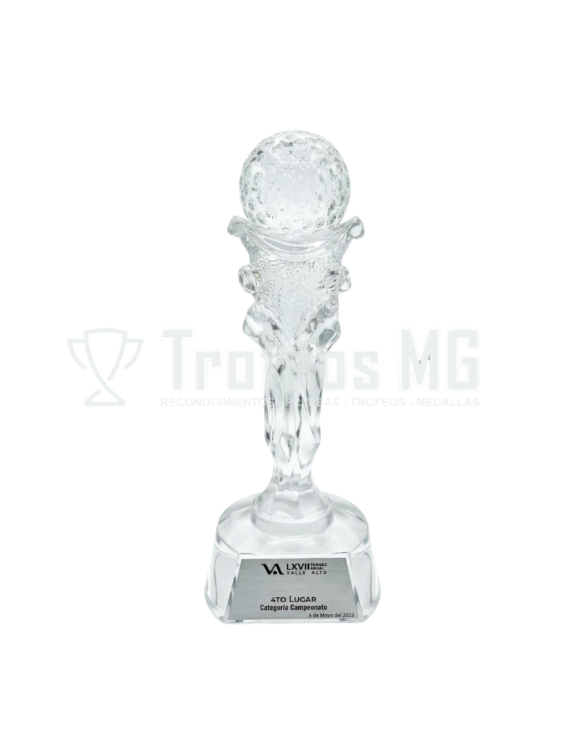 Lleva la premiación de tu torneo al siguiente nivel con este trofeo de diseño clásico y sofisticado. A diferencia de las opciones en acrílico, este trofeo de cristal auténtico destaca por su peso imponente, su brillo excepcional y su capacidad para refractar la luz de manera espectacular.