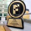 Reconocimiento de acrílico con un diseño sofisticado y profesional. La base negra de acrílico proporciona una plataforma estable, mientras que la placa sublimada permite una personalización completa con logotipos, texto y gráficos a todo color.